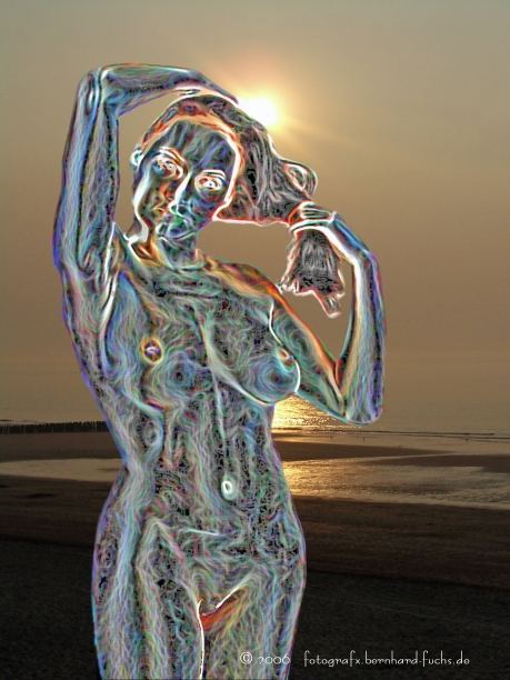 Du liegst am Strand, döst so vor dich hin: Auf einmal steht sie vor dir! Eine der Gorgonen? Stheno? Euryale? Oder gar die geköpfte Medusa? Du reibst die Augen und siehst Schlangen an ihrem Körper und im Haar. "Eigentlich ist sie viel zu schön für eine Gorgone" denkst du und nickst wieder ein, froh darüber NICHT ZU STEIN geworden zu sein.... "außerdem fehlen die Flügel..."